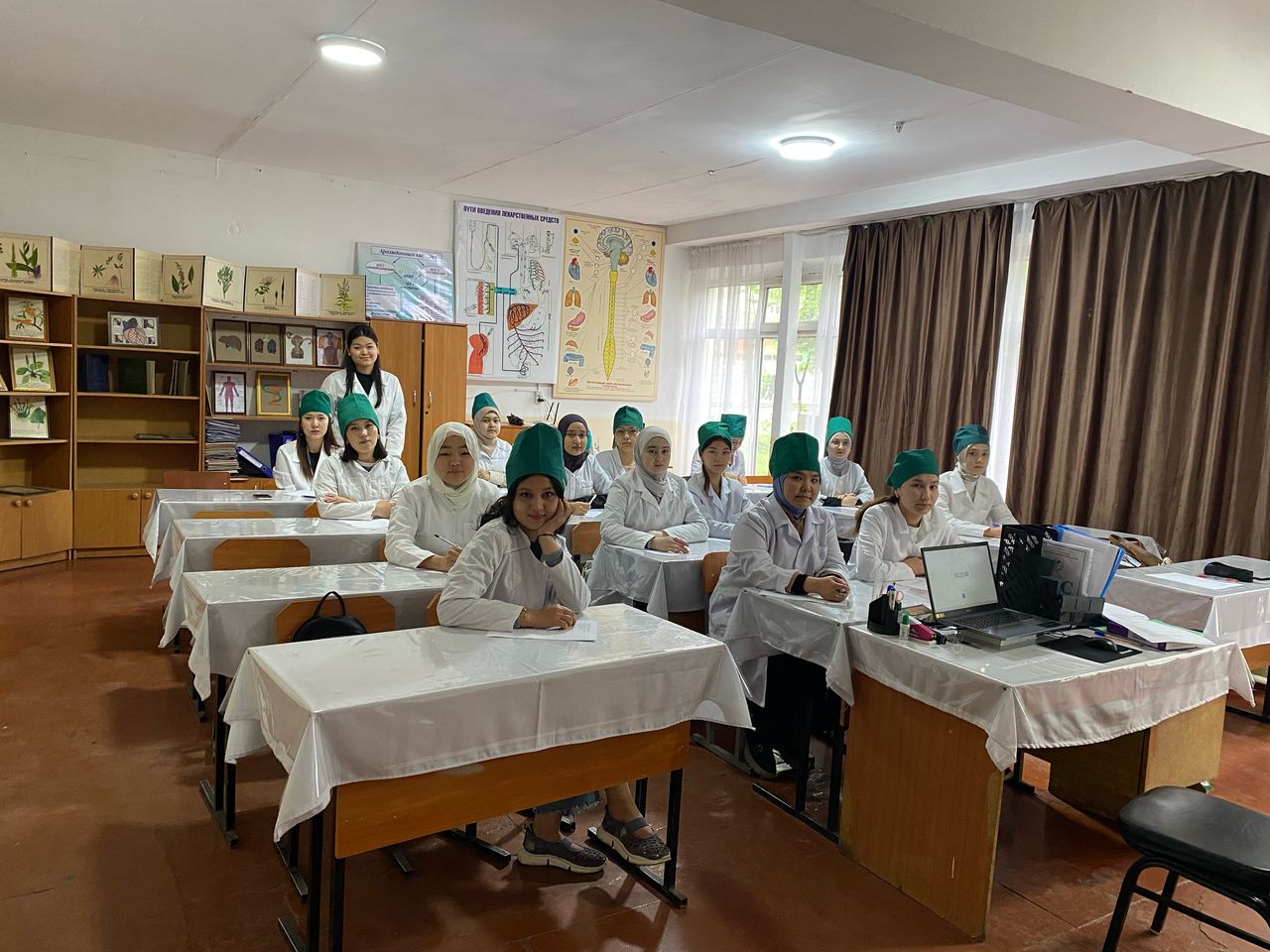 Вниманию преподавателей и студентов была предоставлена литературно-музыкальная композиция,проведены различные конкурсы.Вручены дипломы и грамоты , призы.На мероприятии студентов поздравили и.о.директора Мамытова А.Ш. и зам. директора по практике Баймуратова Г.К. На мероприятии был исполнен гимн фармацевта ОМК,написанный и исполненный преподавателями и студентами. УПП проходит по типовой программе, утверждённой М.З.К.Р. За время прохождения практики студенты научились работать с микротомом, готовить препараты,микроскопировать их, различать ткани и клетки.Посещали паталогоанатомический музей и морг, осматривали трупы. , 1- по теории 2- по практике ( приготовление лекарственной формы) 3 этап прошел в виде чтения маркировки на упаковках лекарственных форм. Призовые места заняли: 1. Куламжанова Жылдыз 2. Гуламова Макарам 3. Мадаминова Ойтожихон Занявшие 4-5 места студенты: Алижанова Назира и Миркамилова Робия награждаются почетными грамотами Ошского медицинского колледжа. Условия олимпиады: 1-этап- тестирование. 2-этап-устно по экзаменнационным билетам. 3-этап- конкурс на логику. 1,2,3-призовые места освобождают студентов от сдачи экзаменов. 4-место-награждение грамотой ОМК. 22 апреля на отделении “Лабораторная диагностика”, 2курса,группы 2л Ошского Медицинского Колледжа прошёл 2 и 3 этапы олимпиады, который прошёл устно по экзаменационным билетам. В билетах было з задания: 1- по теории. 2-по практике […] Ошском Национальном Кыргызском Драматическом Театре имени С.Ибраимова прошла ярмарка вакансий и профессий. В данной ярмарке принял участие Ошский Медицинский Колледж. Главная цель ярмарки-содействие в трудоустройстве выпускников колледжа, их конкурентоспособности на рынке труда, предоставление актуальной информации о возможностях трудоустройства. Участники имели возможность общаться с работодателями и подать заявки на открытые вакансии. Преподаватели ДЦК”ЛД И Ф ” […] Студенты Ошского Медицинского Колледжа отделения “Лабораторная диагностика “,группы 3л прошли Предквалификационную практику по дисциплинам МКЛИ,МИКРОБИОЛОГИЯ, ГИГИЕНА С ТСГИ в качестве помощника лаборанта на базе ЛПУ К.Р. Студенты овладели практическими навыками работы с лабораторным оборудованием, посудой,реактивами,препаратами,Практиканты самостоятельно выходили на забор проб из внешней среды, забор крови, а также самостоятельно проводили ОАК и ОАМ, самостоятельно регистрировали и […] 24.04.2025 жылы окутуучулар: Атаханова М.К, Сатарова Х.С, Омурзакова Г.С жана Абдыкадырова Р.К Кызыл-Кыя медициналык колледжине академиялык мобилдүүлүк боюнча барып конок леция окуп келишти.Визиттин алкагында төмөндөгүдөй иш чаралар болду: 1. ККМ колледжинин администирациясы жана жамааты менен таанышуу. 2. ККМ колледжинин материалдык- техникалык базасы менен таанышуу; 3.Конок лецияларды окуу; 4.Талкуу; 5 Презентация. Бүгүн 08.04.25. “Педиатрия,акушерство жана хирургия “дисциплиналар бирикмесинин окутуучусу Саткангулова Зарина Орозбековна Акушерство сабагынан ” Акушердик операциялар (тондун түшүү мезгилинде жана төрөттөн кийинки мезгилде) деген темада ачык көргөзмөлүү сабак өттү. Сабакта интарактивдик ыкмалар колдонулуп, студенттердин активдүүлүгү өзгөчө болду. Сабак максатына жетти. Кесиптешке ийгилик каалайбыз! 08.04.2025. Сегодня преподаватель цикла дисциплин «Педиатрия, а