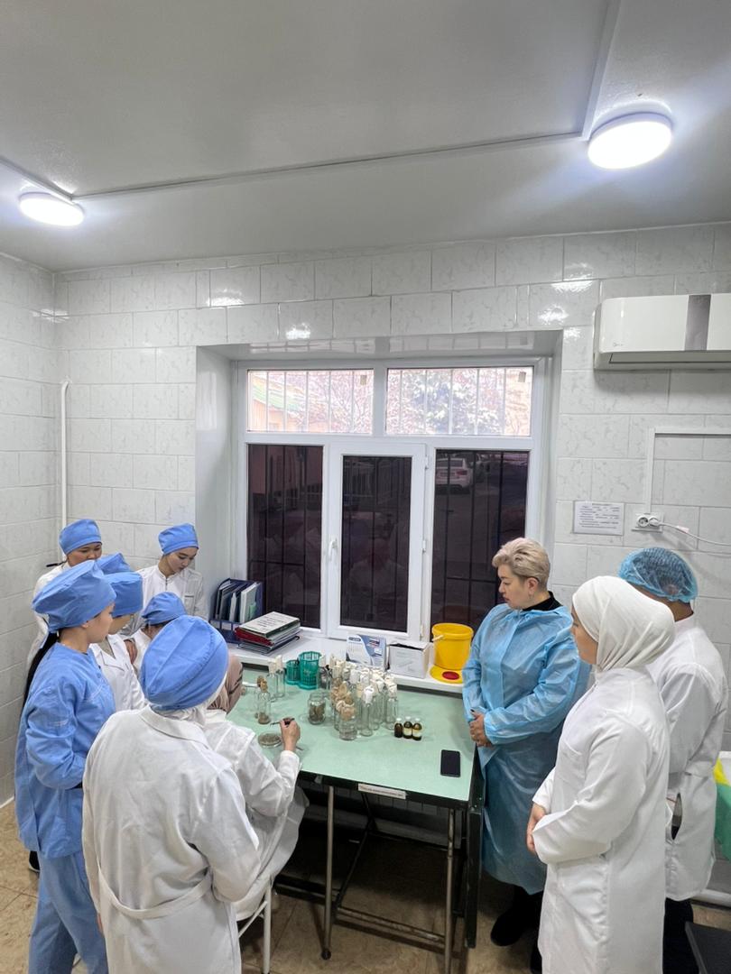 На базе ГЦПЗ и ГСЭН в СБЛ и СГЛ проходят учебно-производственную практику студенты ОМК, отделения “Лабораторная диагностика “,группы 3л по дисциплинам МИКРОБИОЛОГИЯ и ГИГИЕНА с ТСГИ. За время прохождения УПП студенты практиканты научились регистрировать пробы, маркировать,ознакомились с документацией, заполнять бланки анализов,самостоятельно проводить анализы.