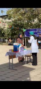 Вниманию преподавателей и студентов была предоставлена литературно-музыкальная композиция,проведены различные конкурсы.Вручены дипломы и грамоты , призы.На мероприятии студентов поздравили и.о.директора Мамытова А.Ш. и зам. директора по практике Баймуратова Г.К. На мероприятии был исполнен гимн фармацевта ОМК,написанный и исполненный преподавателями и студентами.