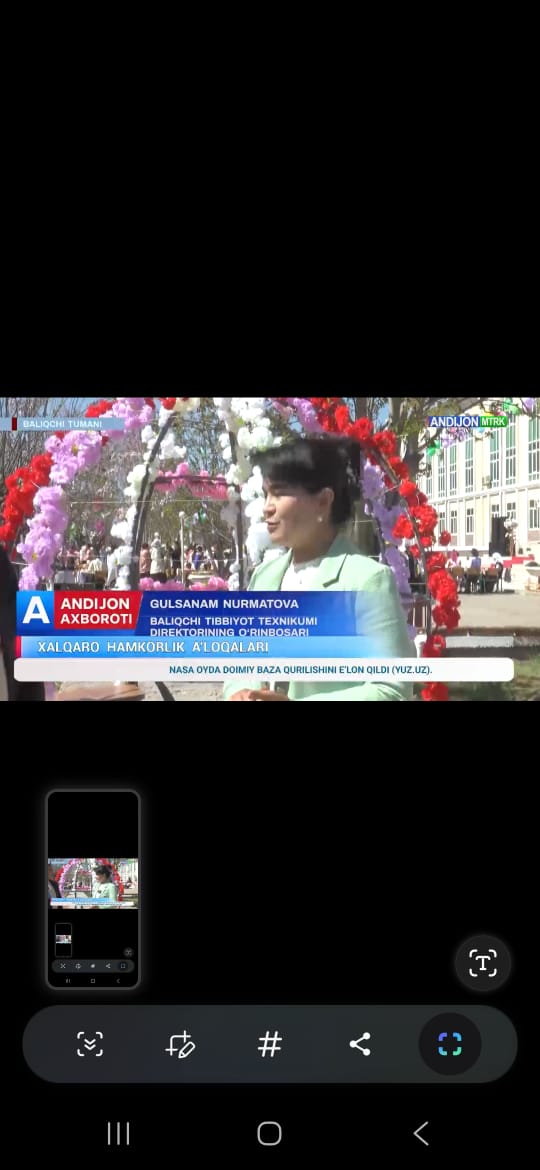 26.03.26 во время визита в Балыкчинский медицинский техникум имени АБУ АЛИ ИБН СИНА Андижанской области был снят репортаж ,который был показан в информационной новостной программе “АХБОРОТ”.Члены делегации дали интервью местному Андижанскому телевидению