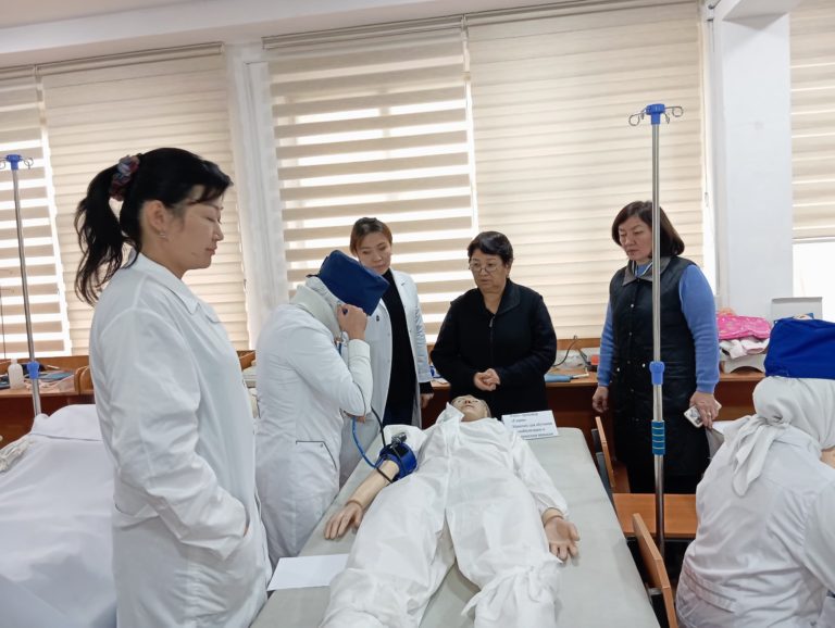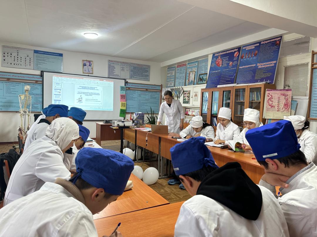 Преподаватель медицинского колледжа Ош ГУ Шакабаева С. провела гостевую лекцию на тему «Диагностика беременности» для студентов 2-го курса специальности «Акушерское дело» (АД).